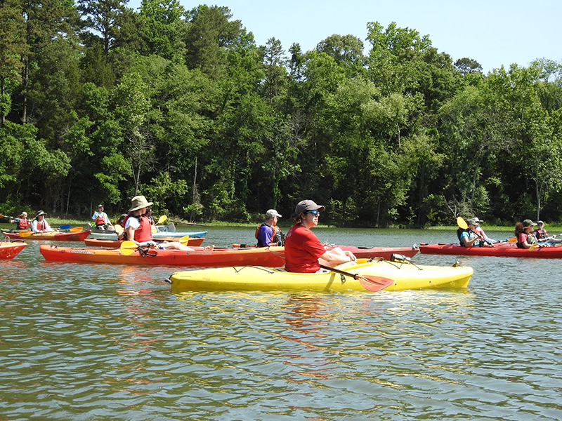Wild on the Water, our signature fundraising event, is a guided paddle of kayaks, canoes, and stand up paddleboards (SUPs) on Mountain Island Lake at Latta Nature Preserve. We paddle out to one of the many osprey platforms where a local naturalist talks about the ospreys and other wildlife, the plants, and the importance of this part of the Catawba River. Following the paddle we have a delicious lunch and a fun raffle full of valuable prizes.